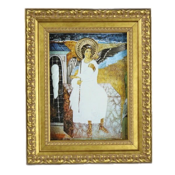 Ikona predstavlja umetničko delo od posebnog značaja, fakt crkvene umetnosti, ali i dogmat, i bogoslovlje, pre svega... Uz svaku kupljenu sliku, galerija umetničkih slika beli anđeo kupcu dostavlja zvaničan validan sertifikat koji garantuje autentičnost, vlasništvo i originalnost umetničke slike.. Predstavlja arhanđela gavrila koji sedi i rukom pokazuje u pravcu hristovog groba.